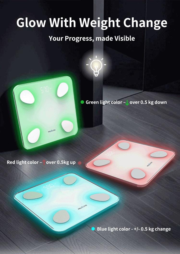 Smart Body Fat Scale with 7-Color Remote Glowing Display & App